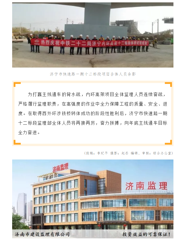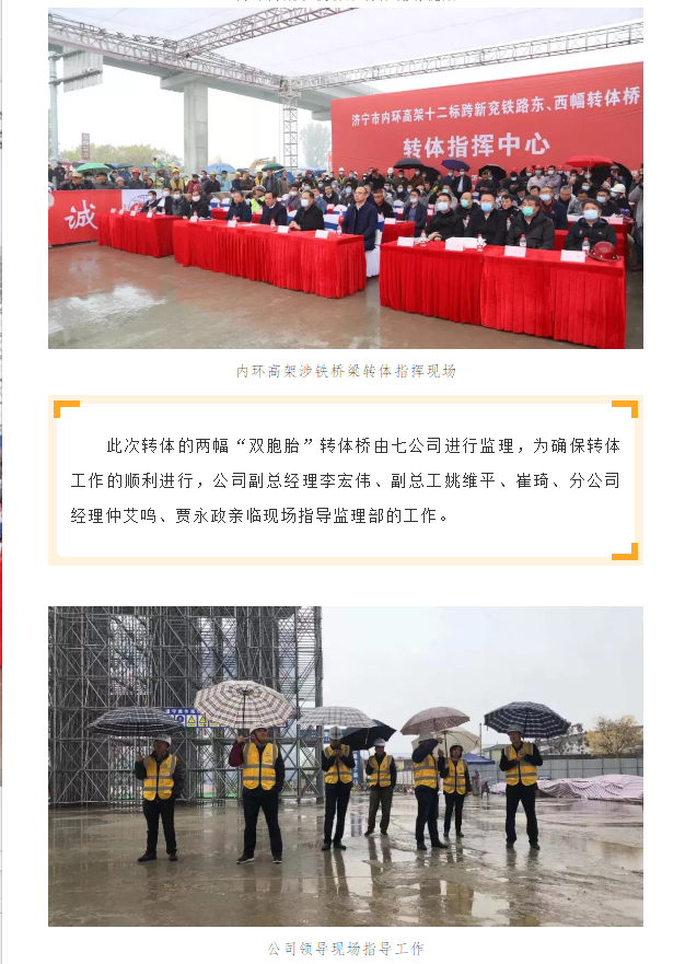 济宁市内环高架项目西外环涉铁转体桥成功转体