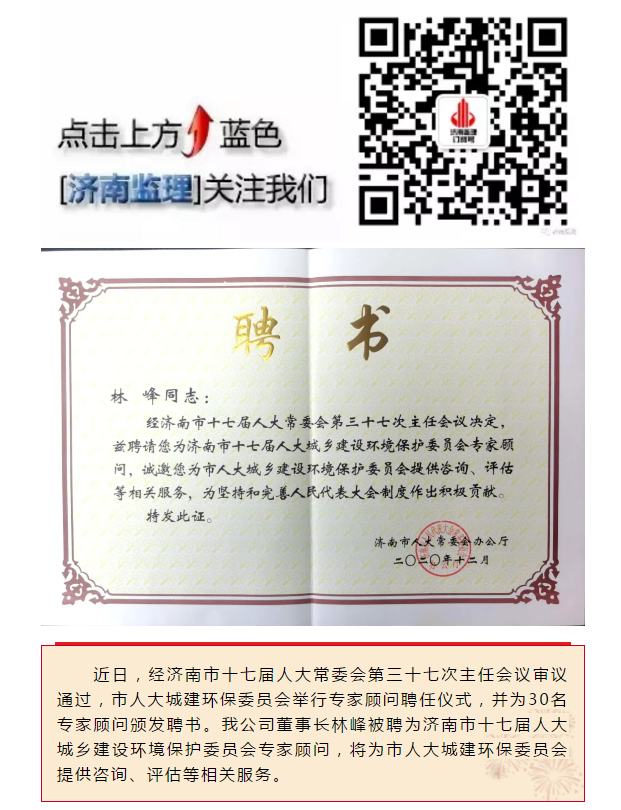 公司董事长林峰被济南市人大常委会聘为专家顾问